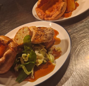 Roasted rump of beef cooked to perfection and served pink with yorkshire pudding
